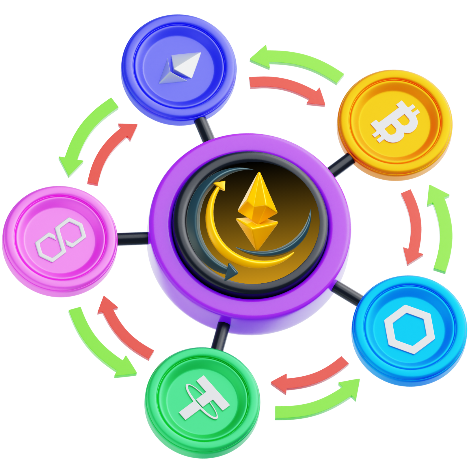 Leverages Multichain Protocol to securely transfer tokens and data across chains. Empowers DApps to support multichain assets with high efficiency and low fees. Fully compatible with smart contract automation.